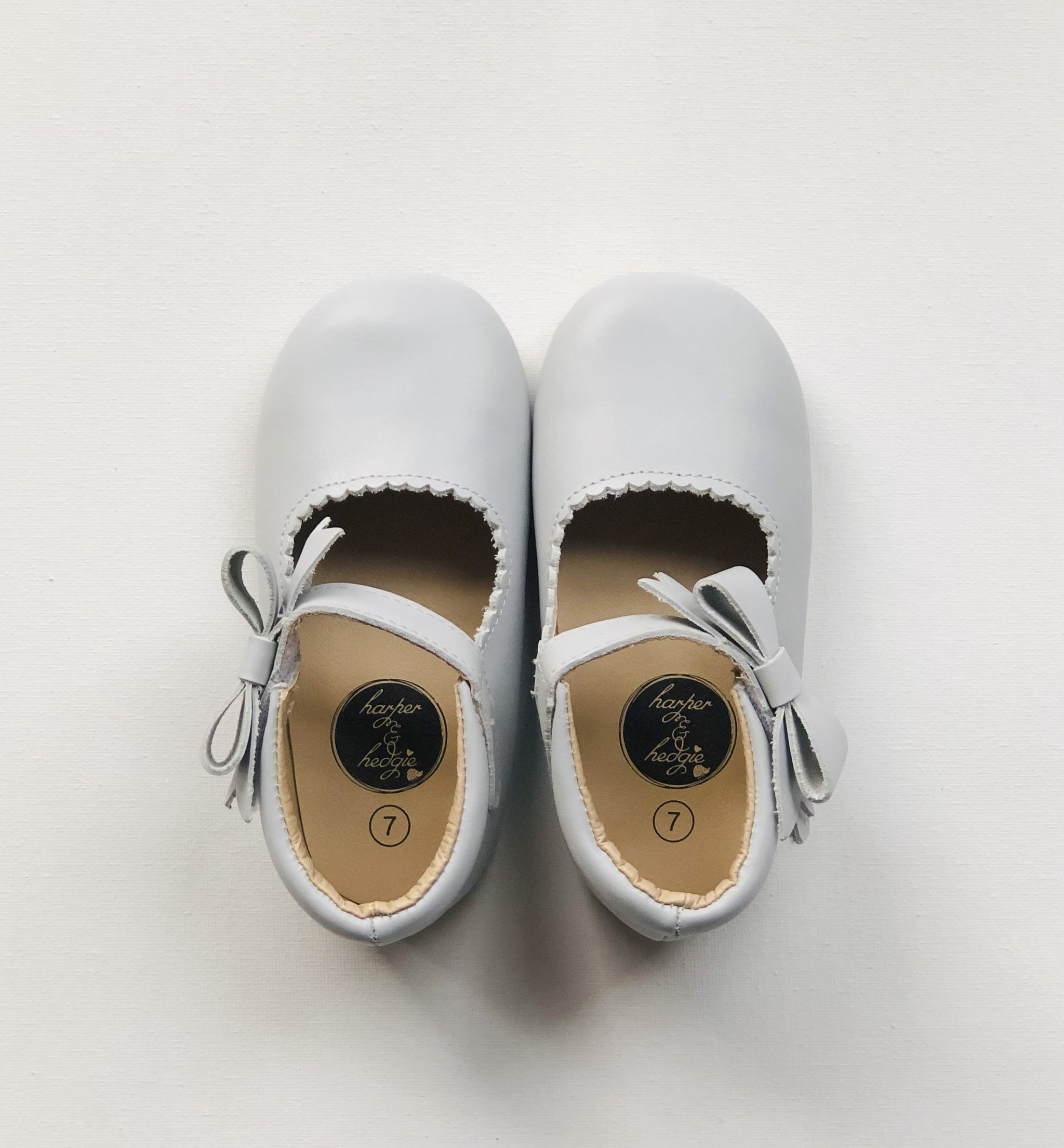 Our Sweet Mary Janes in light Dover Grey offer that timeless look going back to the early 1900's. In the 1950's they were considered a must-have style for all children! Today nothing has changed, they are just as sweet and loved as ever! Perfect for any outfit and any occasion, these are a staple shoe for every little girl's wardrobe! High quality and made with love so you can treasure these long after your little one outgrows them.